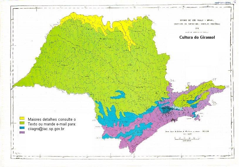 Não foi considerado no mapeamento qualquer parâmetro relacionado aos fatores térmicos. Sendo o girassol planta de grande tolerância aos extremos termométricos, não encontra, praticamente, dentro dos limites do Estado, restrições climáticas nesse sentido (Camargo, 1971).