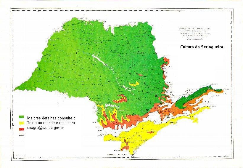 No Estado de São Paulo, até cerca de 23ºS no Planalto e 25ºS no litoral, em condições quase subtropicais, numerosos campos experimentais e culturas comerciais vêm se desenvolvendo, sem qualquer problema ligado ao clima (Camargo, 1963; Cardoso, 1968; Martinez, et al., 1969). O seringal mais antigo do Planalto Paulista, plantado em 1916/17, acha-se em Gavião Peixoto, próximo a Araraquara (Camargo, Felisberto, 1958).