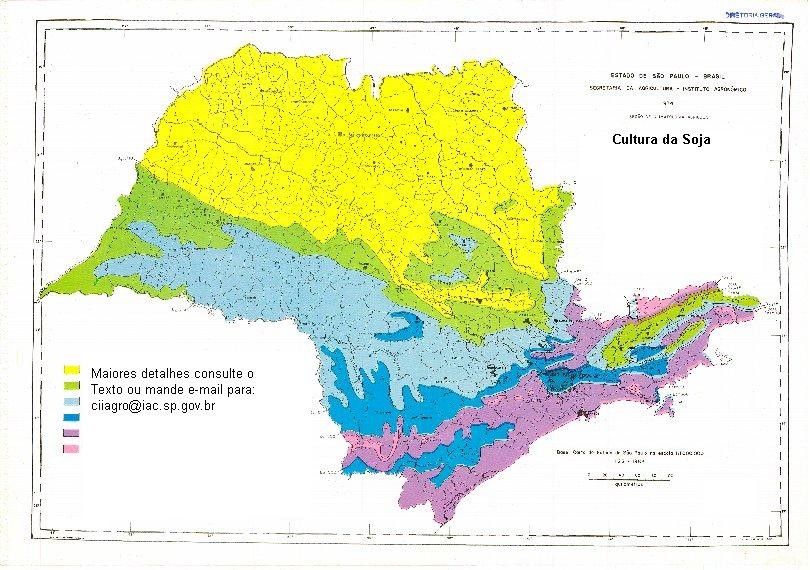 Como acontece com o milho, basta o emprego de tipos de cultivares de soja selecionados e adaptados às características fotoperiódicas locais, para conseguir as melhores condições para o desenvolvimento e produção. Apenas, determinadas áreas demasiadamente úmidas das zonas serranas e do litoral do estado, ou as muito frias, como os altiplanos de Campos do Jordão, seriam consideradas inaptas à cultura da soja, como acontece com o milho Py (1969).