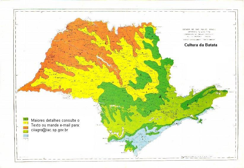 As faixas de aptidão climática para a cultura da batata, no Estado de São Paulo, adotadas são as seguintes: